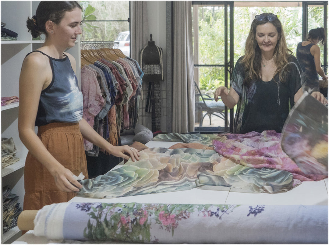All made in our little studio in the hills of Byron. Sustainably crafting wearable art using Harriet's Australian nature photography on natural fibers.