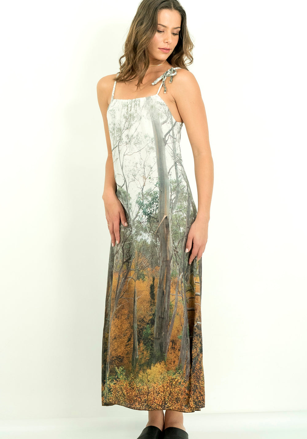 This long flowing Linen Tencel Dress features an amazing 'the turning of the Fagus Beech Tree' captured from a photograph taken during a visit to Mt Feild National Park, Tasmania.