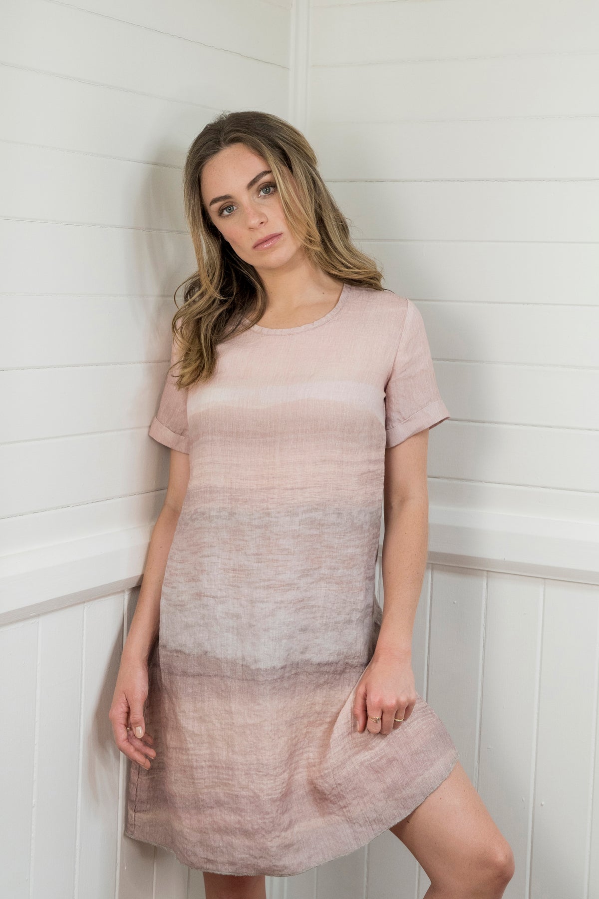 This knee length Linen Dress features a 'sunset looking over Mt Warning' captured from a photograph that was taken in Byron Bay, NSW.