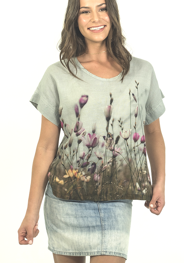 This photo is printed on a lovely, soft, light weight linen.  The T-shirt is a relaxed and comfortable cut, with a Magyar sleeve.  As we are a handmade label we can also make any small personal changes, like a V-neck, XS or changes to hem length.  Shoot us an email to confirm or add a request in notes at check out.